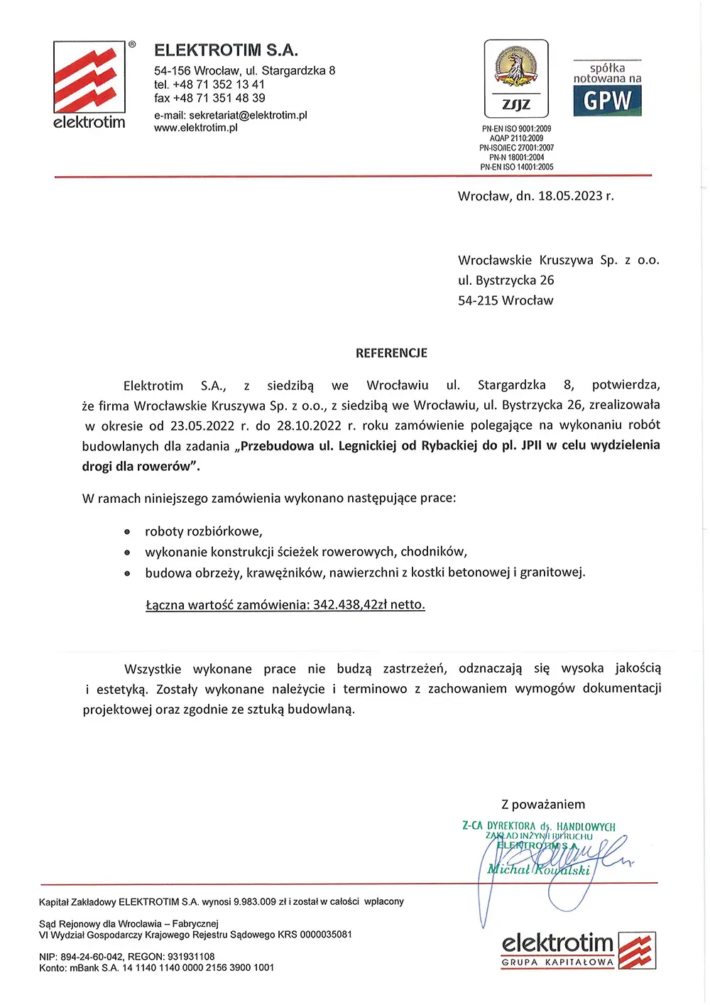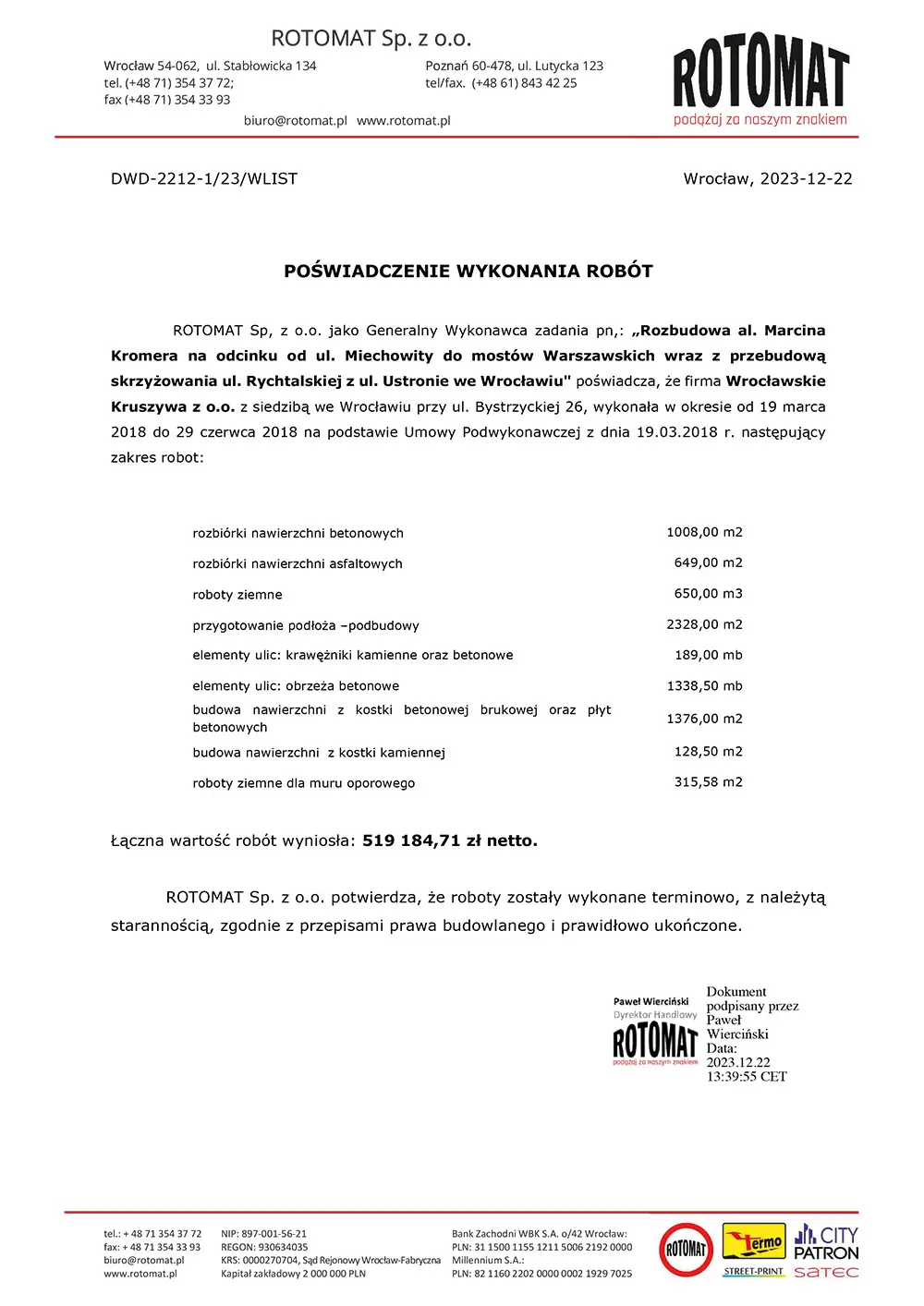 Referencje Co o nas mówią WIęcej Kontakt WK Drogi Wrocławskie Kruszywa Sp. z o.o. ul. Bystrzycka 2654-215 Wrocław tel. 601 626 160tel. 605 629 599